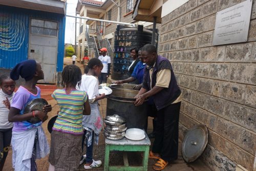 – am vorletzten Samstag habe ich längere Zeit im MMH verbracht. Hier sind einige Impression vom Mittagessen – Beten, “Essenfassen”, Abspülen. Die Hauptspeise ist meist Ugali (Mais) und Gemüse (Kohlarten). Die Kinder mit der Schubkarre bringen Säcke mit Maismehl für Ugali in die Küche.