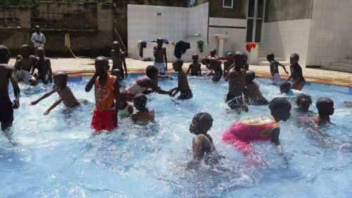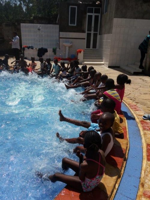 Mitte der Woche fand dann der absolute Höhepunkt der ersten Ferienwoche statt. Die 53 Kleinsten des MMH konnten zu einem Ausflug starten. Schon früh morgens war die Aufregung groß, denn es wurden Handtücher und Badekleidung eingepackt, das deutete auf einen riesen Wasserspaß hin. Mit dem Schulbus ging es zu einem neuen Spielpark für Kinder, der auch einen Swimming-Pool und eine große Spielwiese beinhaltete. Am Vormittag tollten die Kinder auf der großen Hüpfburg, fuhren mit dem Karussell oder schaukelten auf dem Piratenschiff. Manche Kinder spielten auch Fußball auf der großen Wiese oder Federball. Dann gab es ein Picknick – Hühnchen, Pommes, Salat und Saft wurden gierig verspeist. Im Anschluss dann der Höhepunkt des Tages, Planschen und “Schwimmen“ im Swimming-Pool. Es war eine solche Freude den Kindern zuzusehen. Wie glücklich sie waren und wieviel Spaß sie hatten. Am späten Nachmittag, bei der Heimreise fielen nach diesem aufregenden und ereignisreichen Tag den meisten Kindern die Augen zu.