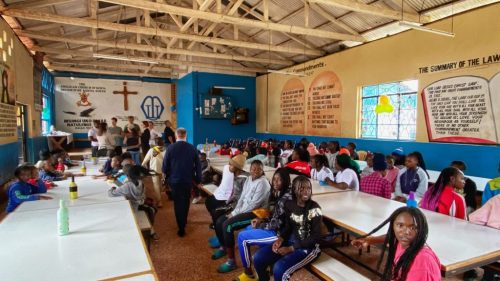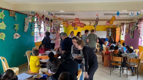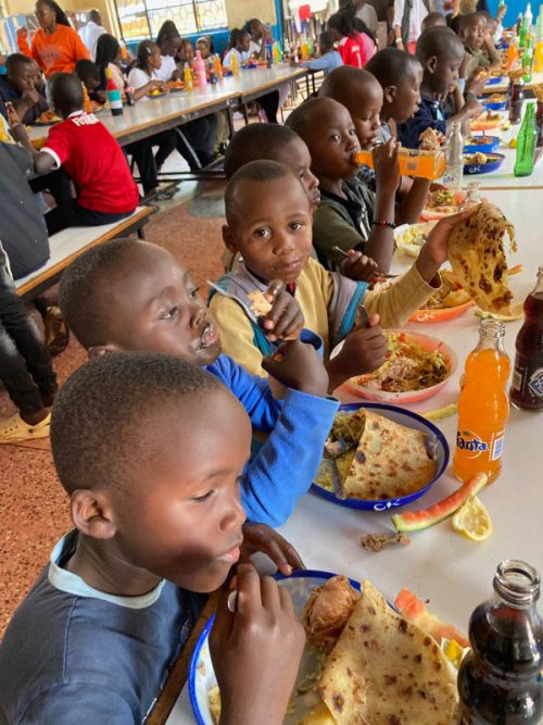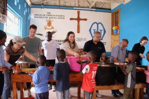 Zum Mittagessen traf sich die gesamte Community vom Mothers Mercy Home in der grossen Gemeinschaftshalle. Charles und sein Küchen-Team errichtete ein reichhaltiges Buffet an traditionell kenyanischen Speisen. Geduldig standen die über 100 Kinder an, um ihr Essen abzuholen. Time for a taste test dann auch für die IWWG – und wir waren einmal mehr beeindruckt, was das Team vor Ort aus der den Kochtöpfen gezaubert hat. Auch die Ärzte und Pfleger aus dem Medical Center nebenan schlossen sich uns beim Essen an. Es fühlte sich wie ein grosses Familienessen beim Mittagstisch an, wo Arzt, Kind, CEO der Lufthansa Cargo, Sozialarbeiterin und Gärtner am gleichen Tisch sassen.