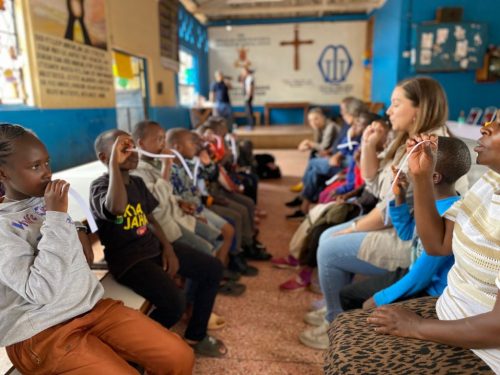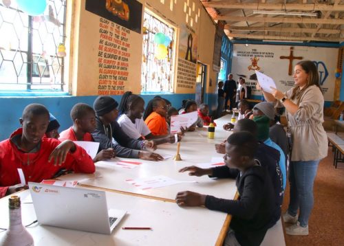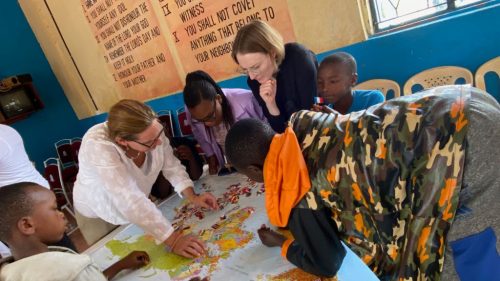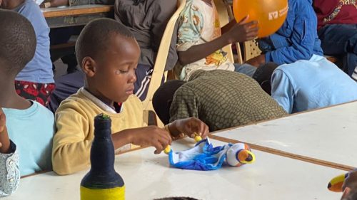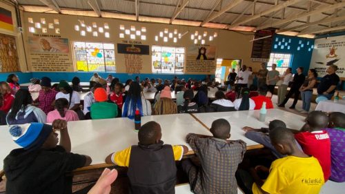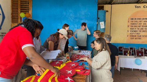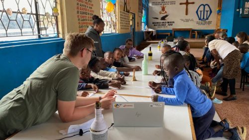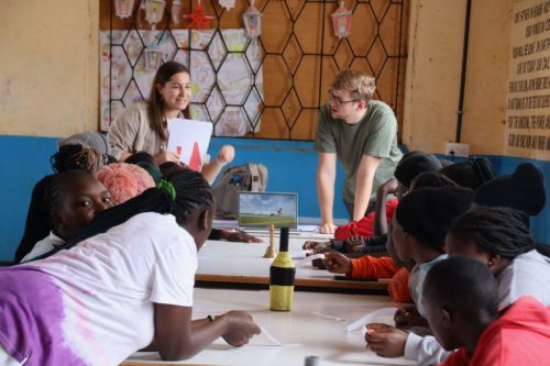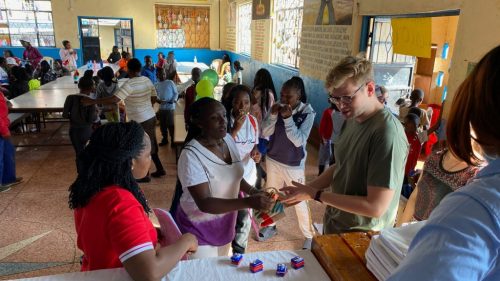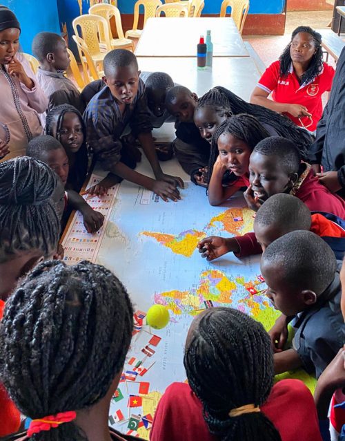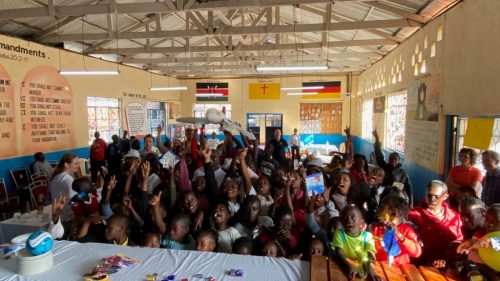 Nach diesen ersten Eindrücken führte uns Charles in die grosse Gemeinschaftshalle. Dort hatten wir für nächsten Stunden ein Programm für die Kinder vorbereitet. Unser Programm bestand aus drei Stationen. An der ersten Station wurde den Jugendlichen erklärt, warum Flugzeuge fliegen, und darauf aufbauend haben die jungen Ingenieurinnen und Ingenieure unterschiedliche Papierflugzeuge gebastelt. An der zweiten Station testeten wir die Geografie-Kenntnisse der Kinder und erklärten auf einer grossen Weltkarte, aus welchen Ländern wir angereist sind, welche Flughafencodes verschiedene Länder besitzen und welche Flaggen zu welchen Ländern gehören. Bei der dritten Station ging es auf den Fussballplatz, wo wir uns in hochklassigen Fussballspielen massen. Gefühlt spielte Liverpool gegen Manchester City, denn sowohl das Ballgefühl, der Spielwitz, als auch das Fussballwissen der Kids war überragend. Es war uns eine grosse Freude, Zeit mit den Kindern zu verbringen und ihr Interesse, ihre Motivation und ihr Engagement während unserer Workshops zu erleben.
