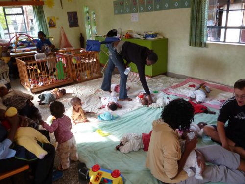 - Wir haben die Kinder eins nach dem anderen gemeinsam angeschaut. Jedes Kind ist einer Mutter zugeordnet worden. Sie ist bis zu meinem nächsten Aufenthalt dafür verantwortlich, dass das Kind einen Entwicklungsschritt macht.