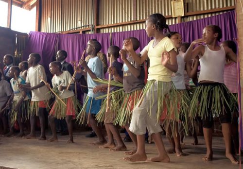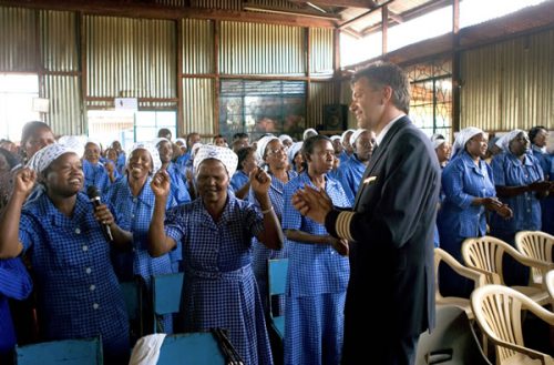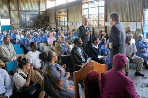 Im großen Gebäude des MMH, das an Sonntagen auch immer für Gottesdienste genutzt wird, haben sich zum Zeitpunkt unserer Ankunft bereits mehrere hundert Menschen eingefunden. Es herrscht eine sehr ausgelassene Stimmung. Die Vertreter der Cargo Human Care werden mit fröhlichen Kikuju-Gesängen empfangen, bei denen einfach jeder mitklatschen muss! Paula führt die Gäste durch ein gut einstündiges Programm. Charles, der angestellte Sozialarbeiter, hat mit den Kindern mehrere kurze Tanz- und Gesangsaufführungen auf der kleinen Bühne vorbereitet, die Texte wurden speziell für diesen Anlass geschrieben! Eine Vertreterin des Bildungsministeriums überbringt die Grüße des Ministers. Anschließend eine Ansprache vom Bischof Timothy Ranji in der Kikuju-Sprache, die von einem Vertreter der Kirche ins Englische übersetzt wird. Ich darf anschließend unsere „deutsche Delegation“ vorstellen und Priester Paul übersetzt – diesmal ins Kikuju. Bei der Gelegenheit kommt auch die mittlerweile fünfjährige Freundschaft zwischen unserer Cargo Human Care und dem Waisenheim nicht zu kurz.