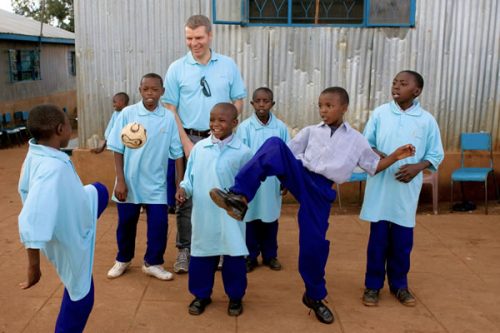 Das eigentlich an dieser Stelle im Programm geplante Fußballspiel mit Bischof Timothy im Tor und Dr. Otto als Schiedsrichter muss entfallen – der Fußballplatz ist leider mit Baumaterialien voll gestellt – aber die 84 Kinder haben sich trotzdem sichtlich über ihre neuen frisch aus Shenzhen importierten Trikots „sponsored by Jade Cargo“ und Kay Kratky gefreut!