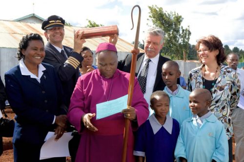 Nach monatelangen Vorbereitungen soll an diesem Tag die feierliche Grundsteinlegung für das neue Wohngebäude der Kinder und unser Cargo Human Care Medical Centre stattfinden. Eine lange Gästeliste umfasst nicht nur die Kinder und Angestellten des MMH und der Diocese of Mt. Kenya South, sondern auch viele aktive Damen der kirchlichen Mothers Union, Vertreter des kenianischen Bildungsministeriums, der deutschen Botschaft in Nairobi und der Baufirma. Aus Deutschland sind drei Vertreter der FAZ und mehrere CHC-Aktive angereist, Dr. Sven Sievers befindet sich im Rahmen eines medizinischen Einsatzes schon seit einigen Tagen in Nairobi, Lufthansa Cargo ist mit Mitarbeitern der Station Nairobi und last but not least mit Dr. Otto aus dem Vorstand bestens vertreten.