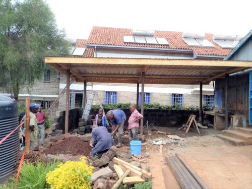 Vor kurzem haben wir nun Bilder von den Umbaumaßnahmen bekommen. Zuerst wurde im Hof ein neuer Platz zum Trocknen der Wäsche hergerichtet. Dazu wurde ein Wassertank versetzt, eine Überdachung und halbhohe Seitenwände gebaut. Danach ging es an das Einreißen der Innenwand der Werkstatt. Für die Kinder ist es gut, neben den Hausaufgaben, die sie von der Schule bekommen, eine handwerkliche Tätigkeit zu haben. So haben sie zum einen in der Zeit, in der sie das MMH nicht verlassen können, eine Abwechslung. Zum anderen errichten sie etwas, das noch lange Zeit Bestand haben wird und das ihnen noch lange zeigen wird, welche sinnvollen Fertigkeiten sie neben dem schulischen Lernen erlangen konnten.