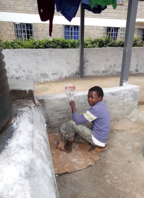 Daniel Macharia, der seit einigen Jahren alle anfallenden Reparaturarbeiten im MMH durchführt und bei Arbeiten in der Holzwerkstatt sehr gerne die Kinder einbezieht, hat während des Lockdowns ein Zimmer im MMH bezogen. Das hat es ihm ermöglicht, zusammen mit den 10 im MMH verbliebenen Kindern, das Projekt zu realisieren.