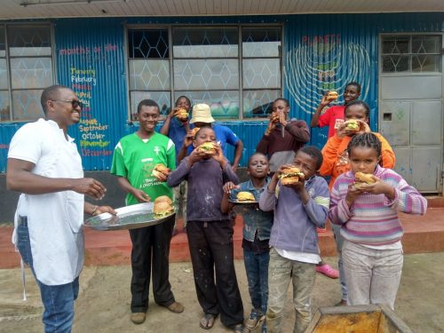 Soviel Fleiß und Engagement hat eine Belohnung verdient. Zum ersten Mal gab es im MMH Burger zu essen, persönlich gekocht von Senior Social Worker Charles und sehr gelobt von den Kindern und allen Angestellten, für die es auch ein sehr außergewöhnliches Essen war.