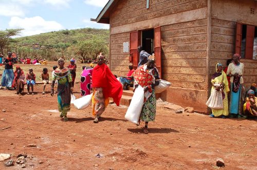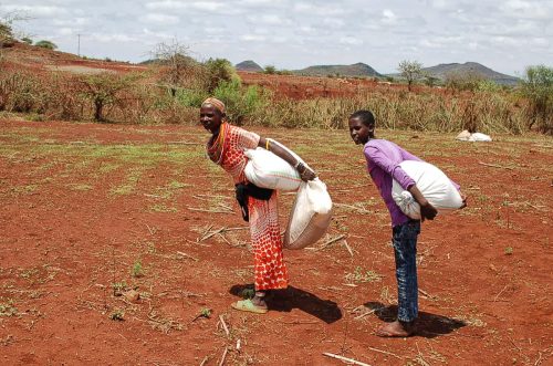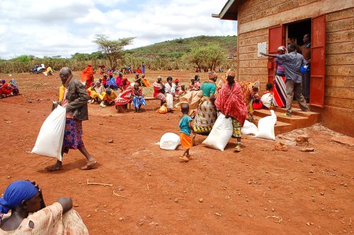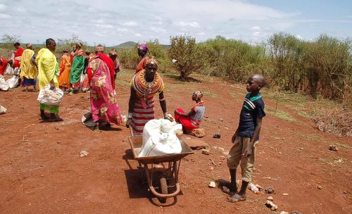 Mitte April haben die Mitarbeiter der Diözese Marsabit in unserm Auftrag zum zweiten Mal Mais, Bohnen und Speiseöl in die vier von uns versorgten Dörfer geliefert.