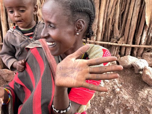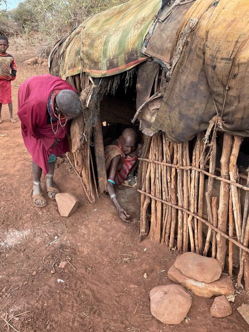 Auf der Fahrt nach Marsabit haben Jeremiah, Patrick und ich einige Familien in Karare besucht, die während der Dürrekatastrophe von CHC mit Lebensmittelversorgt werden.