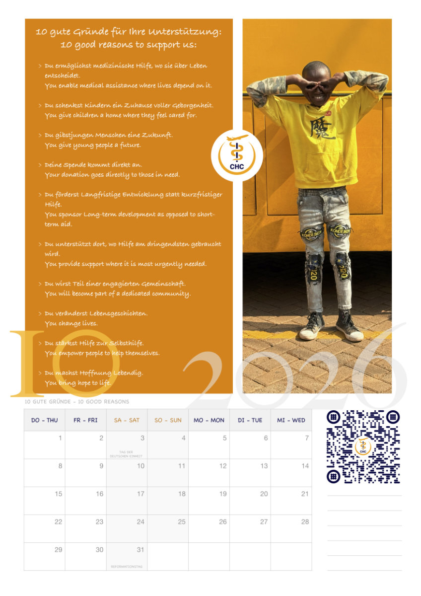 Mit eindrucksvollen Bildern gibt der Kalender einen Einblick in die Arbeit vor Ort und auch in Frankfurt und weltweit beim alljährlichen Bürostadtlauf. Er zeigt, wie viel durch gemeinsames Engagement bewegt werden kann.
