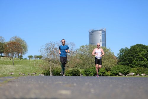 Schon zum Zeitpunkt des Laufs waren mehr Spenden eingegangen, als wir alle erwarten hatten. Entsprechend euphorisch ging Maximilian auf die Strecke. Die sommerlichen Temperaturen bremsten dann aber den Schwung irgendwann doch (etwas). Auf den letzten Kilometern wurde es ordentlich anstrengend – gut, dass zehn Lauffreunde ihn dann ein paar Kilometer vor dem Ziel begleiteten und anfeuerten.