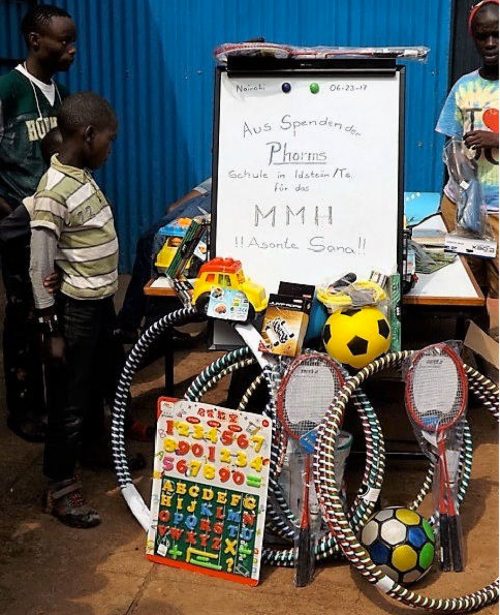 Mitte Juni, bei unserem letzten Besuch im Mothers’ Mercy Home, konnten wir die von der Phorms Schule gespendeten Spielsachen und Malbücher übergeben: