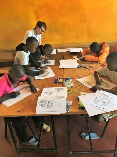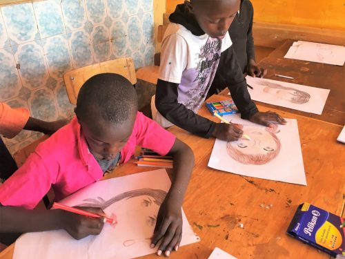 Einer Gruppe besonders talentierter Kinder wurde gezeigt, wie man Gesichter und Porträts zeichnet.