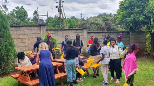 - Studenten im Garten des JKR Jugenhauses