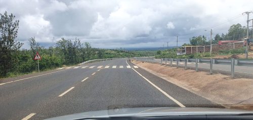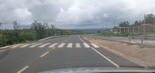 - Auf dem Weg nach Marsabit, wiederkehrende Zebrastreifen auf der Autobahn beeinflussen die Reisegeschwindigkeit