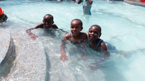 Das Highlight der ersten Woche war ein Tagesausflug mit den 45 jüngsten Kindern zu einem Kinderparadies mit Schwimmbad. Es gab große Aufregung und natürlich strahlende Gesichter. Das Plantschen im Wasser war der Höhepunkt des Tages. Die Rückfahrt mit dem Bus verlief erstaunlich ruhig. Die meisten Kinder waren erschöpft eingeschlafen.