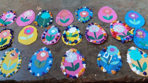 Es wurde mit viel Begeisterung gebastelt, gemalt, gepuzzelt und Memory gespielt. Die kleinen Wunderwerke zieren nun die Common Hall.