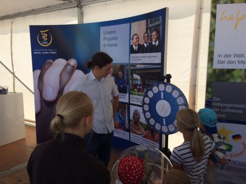 Gemeinsam mit der Help Aliance hatten wir die Möglich unsere Projekte und Arbeit einem breiten Publikum zu präsentieren, denn unser großzügiger Pavillon war direkt neben den Publikumsmagneten DC 6 und dem A 380 perfekt platziert.
