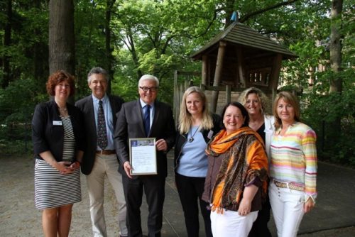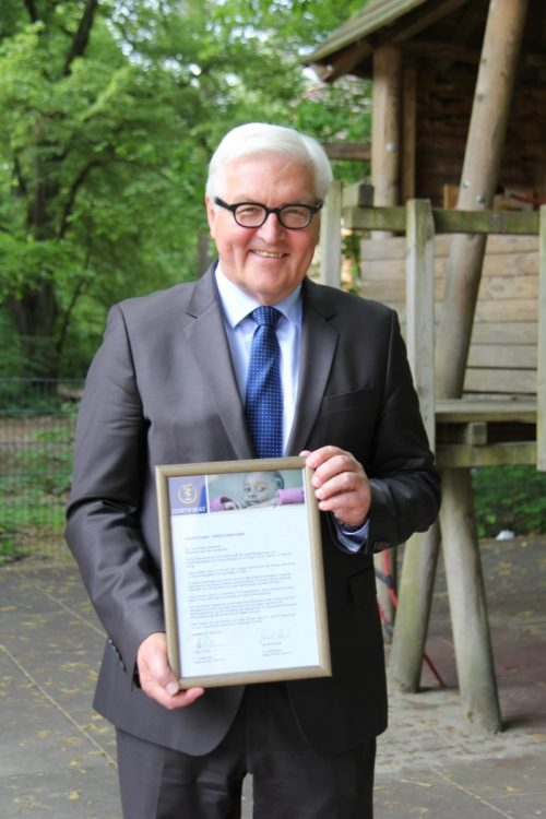 Um 10.00 Uhr haben wir Frank Walter Steinmeier im kleinen Kreis und bei strahlender Sonne am Rande des Spargel Symosiums in den Beelitzer Heilstätten getroffen und ihm sein CHC Zertifikat überreichen können.