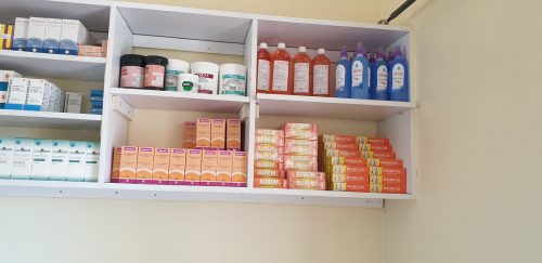 Die Schule hat für den Betrieb der Dispensary Joan eingestellt, die die Funktion eines Clinical Officers einnimmt. Sie hat vor der Übergabe Medikamente eingeräumt und in diesem Monat bereits die ersten Patienten behandelt.