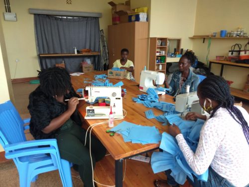 Das JKR Team und einige Studenten unterstützen die Arbeit der CHV’s, indem die neue Ausbildungswerkstatt für Lederwaren kurzerhand auf die Produktion von Schutzmasken (Tragepflicht in der Öffentlichkeit) und Hygienekittel umgestellt wurde. Regelmäßig werden die CHV’s mit dem Mund-Nasen-Schutz beliefert, der dann an die Bevölkerung verteilt wird. Anbei einige Fotos von der Übergabe der Masken an die Volunteers des Kiambu County.