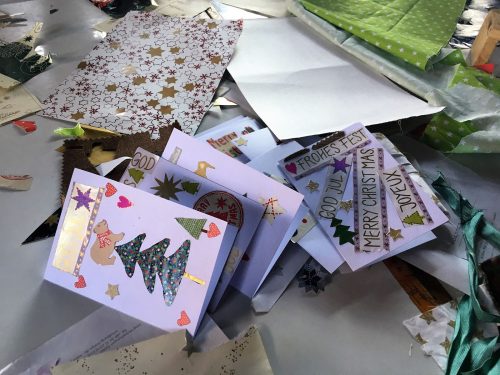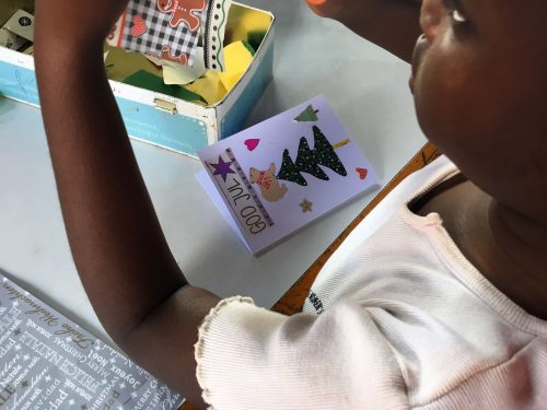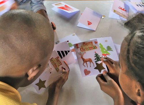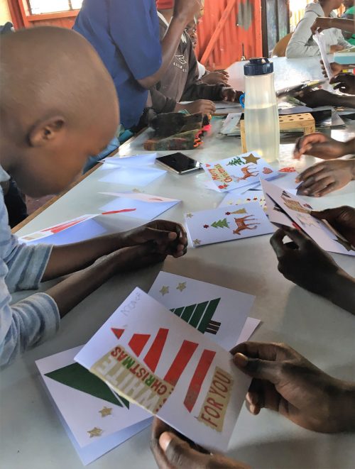 … und deshalb haben die Kinder im Mothers’ Mercy Home schon früh angefangen ein paar Weihnachtskarten zu basteln.
