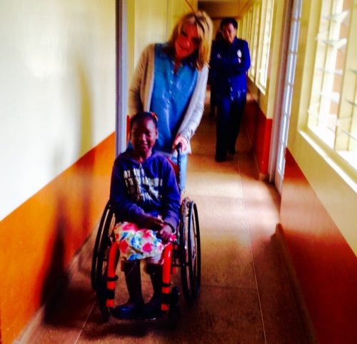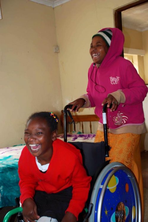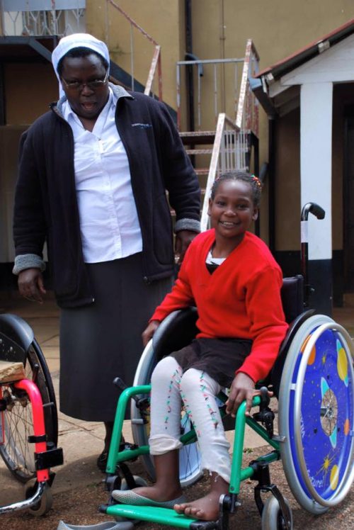Dies ist Teresiah heute, im Januar 2016. Ihre Mutter muss sie nicht mehr tragen und ich auch nicht. Ihren Rollstuhl fährt sie fast selber.