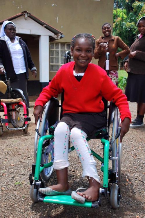 Dieses Mädchen hat mich auf ihre Art & Weise bezaubert. Die Mutter trug sie jeden Tag 5 km in die Schule, was lag da nicht näher, als für Teresiah einen Rollstuhl „Made in Germany“ zu besorgen.