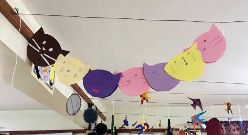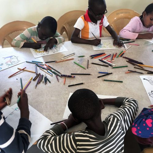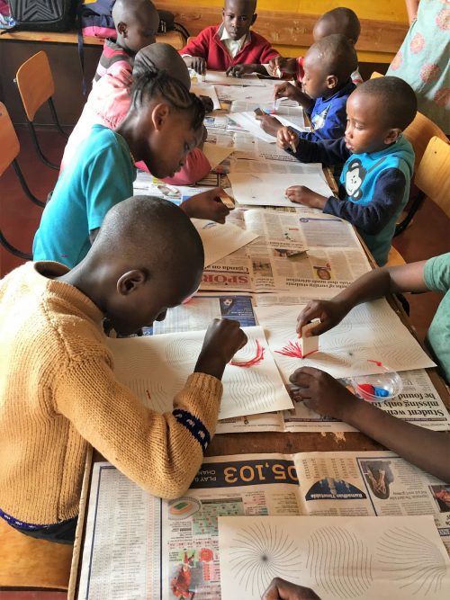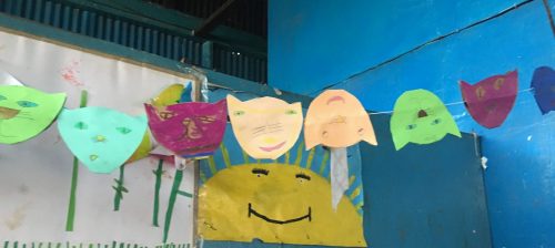 Die verschiedenen Schulen haben ab dem 30.7. nach und nach ihr Schuljahr beendet, so dass bereits in unserer ersten Woche von Tag zu Tag mehr Kinder im MMH waren. Wir konnten somit schon vor dem offiziellen Beginn des Augustcamps einige Workshops durchführen. Ab dem 6.8. waren dann alle Kinder da. Ab diesem Tag wurden für die älteren Jahrgänge unter anderem Workshops zur Vorbereitung auf den Übergang in die JKR gehalten. Wir haben uns auf die jüngeren Kinder konzentriert und mit ihnen verschiedenartige Aktivitäten durchgeführt. Dazu gehörten z.B. Basteln von Katzengirlanden und geflochtenen Fischen zum Aufhängen, das Bauen von einfachen Autos aus Klopapier-Innenrollen oder Flaschen mit Rädern aus Korken, das Kleben von Kollage-Bildern, richtiges Malen mit Wasserfarben, erste Drucktechniken mit Fingerfarben in Kanten-, Schwamm- und Gabeldruck, Bemalen von bunten Kreis-Mobiles, Aufmerksamkeitsblätter für die Jüngsten (Motto: schau genau hin), Flechtmatten mit verschiedenen Mustern, Basteln von Steckvögel zum Aufhängen oder von Schachteln in mehreren Größen, erstes Zeichnen und natürlich immer wieder Ausmalen von Vorlagen.
