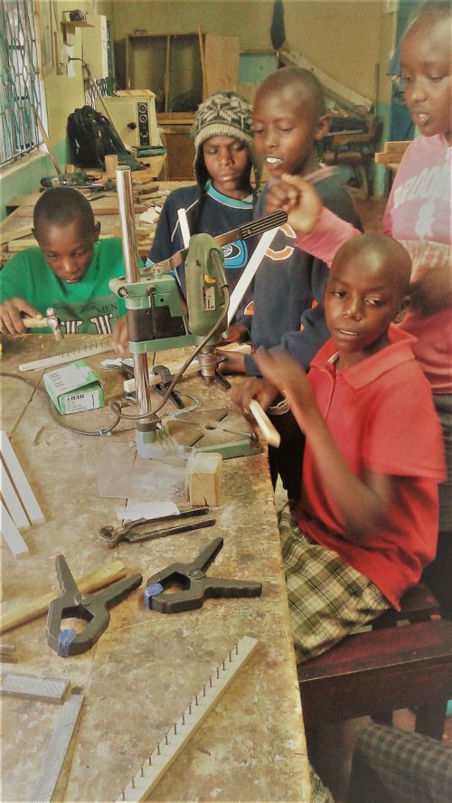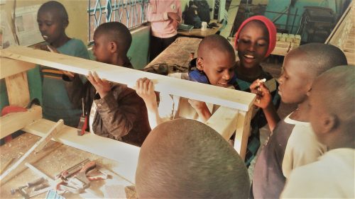 Ich bin immer wieder überrascht und erfreut, dass sich so viele Kinder jeden Alters für das Arbeiten in der Holzwerkstatt interessieren. Ich brauchte niemanden zu rufen oder zu bitten bei den Holzarbeiten zu helfen – es kommen immer mehr, als in der Werkstatt zu beschäftigen und zu kontrollieren sind.