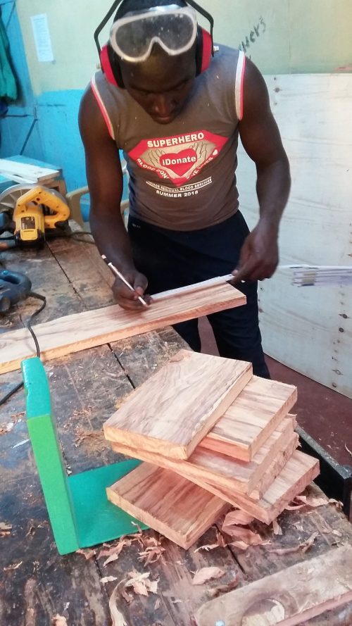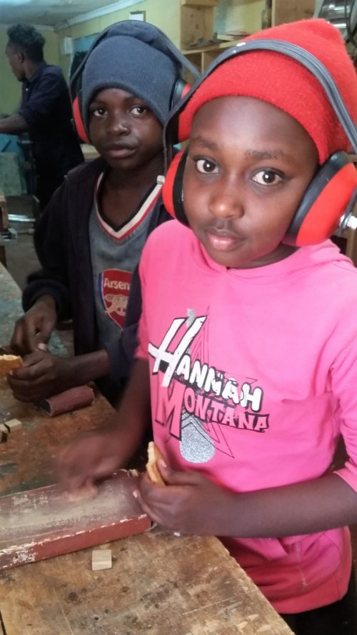 Neben den üblichen Reparaturarbeiten von Strickrahmen und Stühlen wurden neue Strickrahmen gebaut. Ich war überrascht, dass es so viele kleine begeisterte Helfer gab. Selbst 11-jährige Kinder waren tatsächlich vier bis sechs Stunden in der Werkstatt und haben, je nach ihren Möglichkeiten, gebohrt, gefeilt und geschliffen.