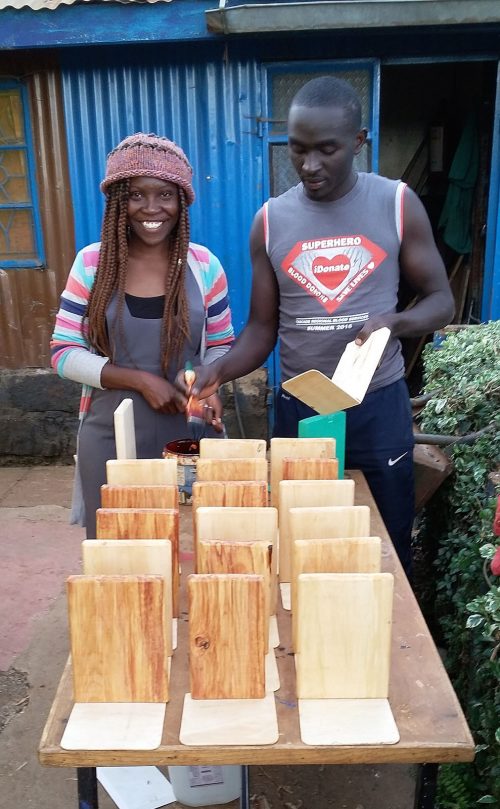 Auf Wunsch von Linda, die auch für die Bibliothek zuständig ist, wurden 20 einfache Buchstützen gebaut, um die Bücher besser thematisch trennen zu können.