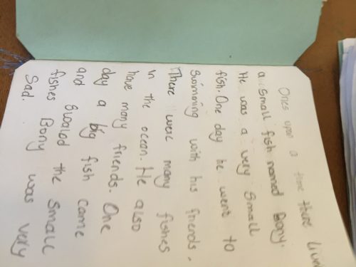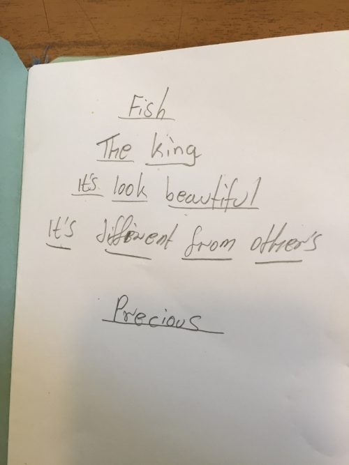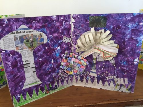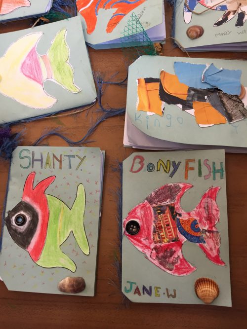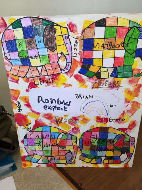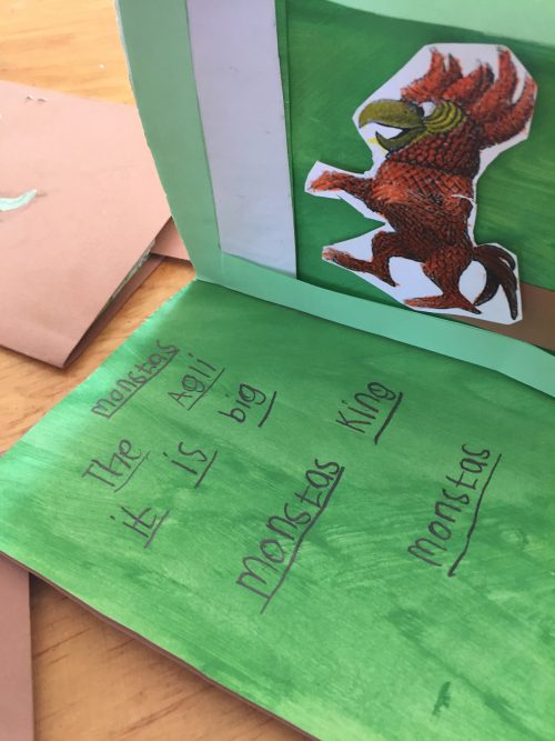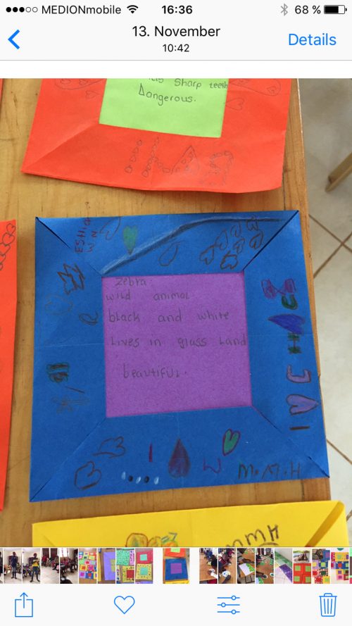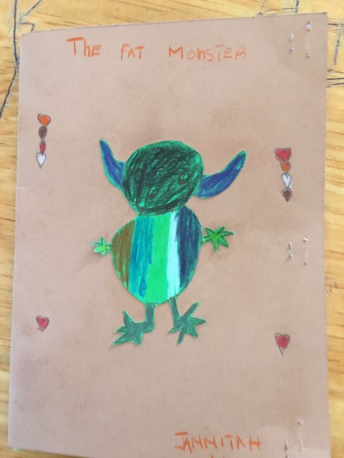 Zum zweiten Mal in diesem Jahr fand ein Book Workshop im MMH statt. Dabei erfuhren die Kinder, wer alles bei der Produktion eines Buches mitwirkt: Autor, Illustrator, Editor bis hin zum Buchdrucker und Buchbinder. Und dann wurde den Kindern die traditionelle Technik, wie aus einem großen Blatt Papier, einem Karton und einem Faden ein Buch gemacht wird, gezeigt. Schon hielten die Kinder ihr eigenes Buch in der Hand, versehen mit einem Titel und es durfte natürlich nicht der Name des Autors bzw. Illustrators fehlen: der jeweils eigene Name. Die Kinder füllten ihre Bücher mit selbst erdachten Geschichten und liebevoll gemalten Bildern. Sie lernten auch die besondere Form des Gedichtes „11“ kennen: 11 Worte in 5 Zeilen. Im Laufe der Woche entstand eine Vielzahl der „11-er“ Gedichte über Tiere, Menschen und was den Kindern sonst noch einfiel. Im Rahmen des Book Workshop ging es sogar auf eine Phantasiereise ins Weltall, und jedes Kind hielt in einem Pop-up-Kofferbuch fest, was es auf der Reise gesehen hat: von Sternschnuppen bis hin zu riesigen Planeten. Ein weiteres Highlight der Woche war das gemeinschaftlich gestaltete Buch mit dem Titel „Rainbow Elephant“ – es wurde fast so groß wie ein Elefant. Abschließend ging es wild zu, denn in einem Monsterbuch bastelten die Kinder eine kleine Theaterbühne mit einer beweglichen wilden Monsterfigur. Da hieß es nur noch „Vorhang auf“.