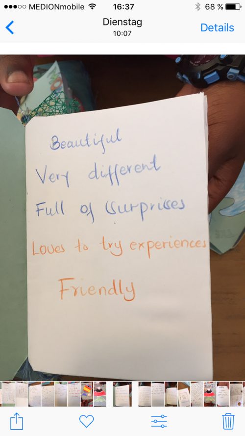 Am Ende jedes Workshop-Tages präsentierten die Kinder mit Stolz ihre Werke und gewannen von Mal zu Mal mehr an Selbstbewusstsein und Selbstvertrauen.