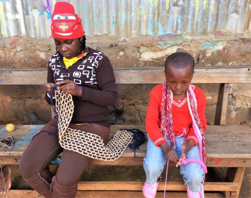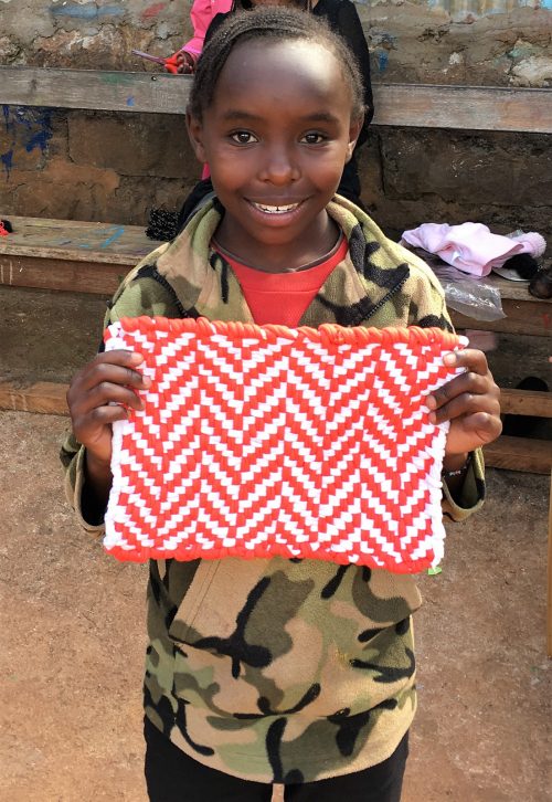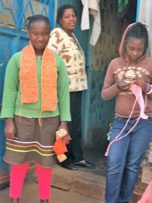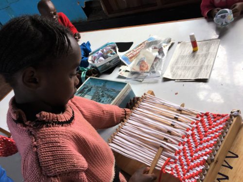 Die Nachmittage waren entweder für Spiel und Sport zur weitgehend freien Verfügung oder sie wurden in „Knitting Classes“ eifrig für Strick-, Web- und Häkelaktivitäten genutzt. Dabei haben viele der Vor- und Grundschulkinder zum ersten Mal die Strickrahmen benutzt und sich sehr über ihren eigenen ersten, selbstgemachten Schal gefreut. Bei den Jugendlichen ist ein neuer Mustervorschlag mit einer kombinierten Häkel- und Webtechnik so begeistert angenommen worden, dass am Ende das Material dafür knapp wurde und einige auf das nächste Mal vertröstet werden mussten. Darüber hinaus wurden wieder etliche Mützen gehäkelt und es wurden die immer noch sehr beliebten Matten gewebt, wobei auch hier ein neues Muster erstmalig genutzt wurde.