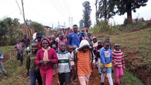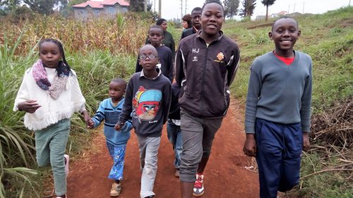 - The children remaining that day at MMH also wanted to do something outside of MMH. Mother Leah, Esther, JKR Alumni David and I decided to take a walk from MMH to the intersection of N’denderu and back. The sweets were the incentive!! Everyone had a lot of fun – even the little ones did well. At this point thanks to JKR Alumni David. He has supported us with empathy and good ideas.