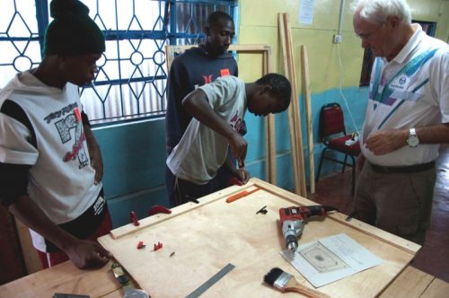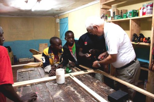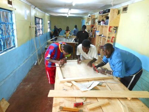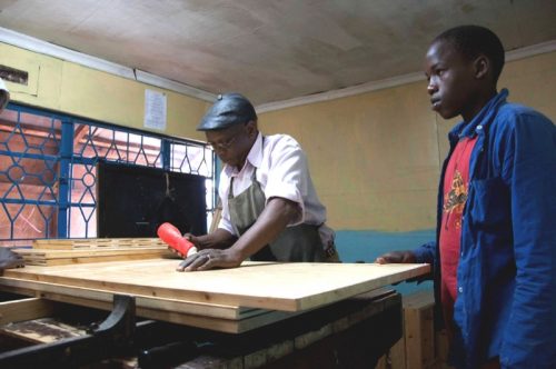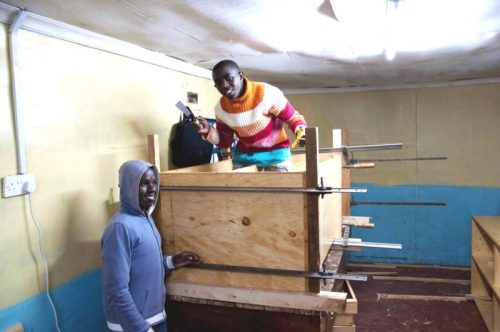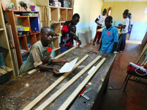 Neben den eigenen Arbeiten hatten die Jugendlichen dieses Mal Gelegenheit, einen professionellen Schreiner bei seiner Arbeit zu beobachten. Für die im letzten Oktober hergestellte provisorische Werkbank hatte der Schreiner David Githecha zwei Sägeböcke als Standbeine hergestellt. Einen davon hatte er ihn Einzelteilen angeliefert und im MMH mit Beteiligung der Kinder fertig gestellt. Ebenso wurden als Ersatz für nicht mehr zu reparierende Schränke in den Schlafräumen der Kinder neue „wardrobes“ im MMH endmontiert. In beiden Fällen wurden damit den Interessierten stabile Dübel-Holz-Verbindungen gezeigt, die mit den heute im MMH vorhanden Werkzeugen nicht hergestellt werden können. Und die jungen „carpenters“ konnten beobachten, wie aus vielen Einzelteilen schöne Schränke entstehen.