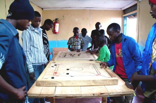 Die fertigen Carrom-Boards wurden an den Nachmittagen sofort vereinnahmt, nicht nur von den Woodies. Wenn wir morgens gegen 9:00 Uhr das MMH erreichten, waren alle drei Boards belegt und von vielen weiteren Interessierten umlagert.