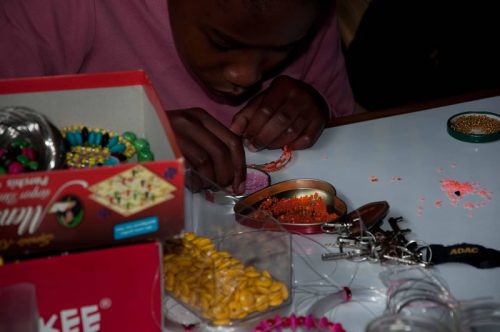 Bead work is a common economic activity here in Kenya and it is a fun way of making money though to make a good income from it talent and creativity is required. We the MMH staff realised that there are a couple of children who are really interested in this activity and this made us arrive at the decision of making it a workshop for this year summer camp.