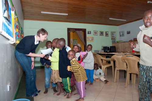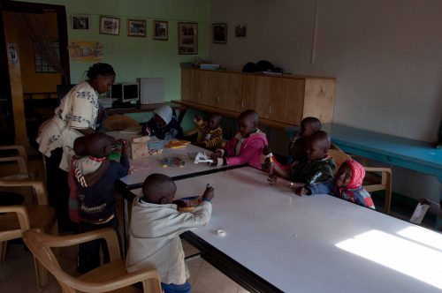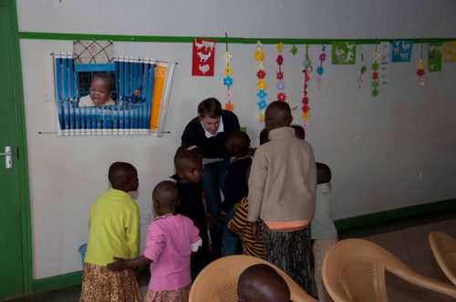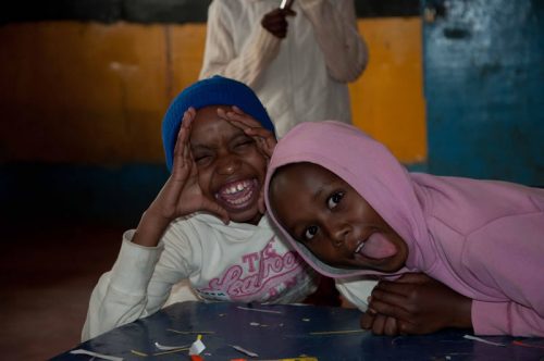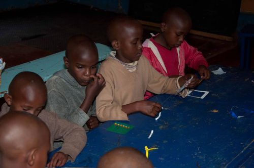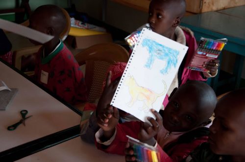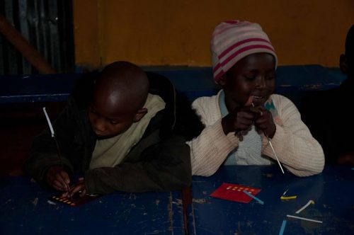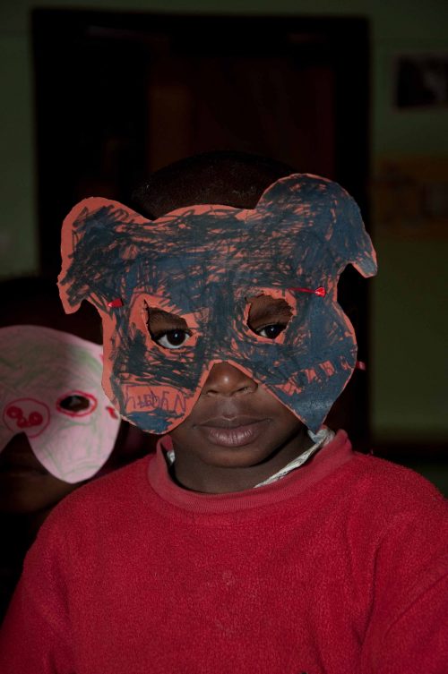 Gegen Ende des morgendlichen Workshops gab es immer zwei wichtige Rituale. Zum einen „Story-story“ und zum anderen das Vorlesen eines Kinderbuches. Bei ersterem gab Mother Grace 3 Stichworte vor, z.B. Mutter, Tochter, Hund und die Kinder mussten sich hierzu eine Geschichte ausdenken und diese den anderen Kindern vortragen – auf Kisuaheli. Für mich war dieses Geschichten-Erzählen unglaublich spannend anzu-schauen, denn oftmals meldeten sich Kinder, die im Workshop selber sehr ruhig waren. Umso schöner war es, dass durch das Geschichten erzählen ihre Fantasie und ihre Kreativität geweckt wurde und sie ganz nebenbei lernten, vor einer Gruppe zu sprechen – ein nicht zu unterschätzender Lernerfolg, der den Kindern im Laufe ihrer Schulzeit und im anschließenden Arbeitsalltag zu gute kommen wird. Mother Grace war stets bereit, mir die Geschichten der Kinder ins Englische zu übersetzen, sodass ich mich selbst von der Fantasie und Kreativität überzeugen konnte, die die Kleinen haben.