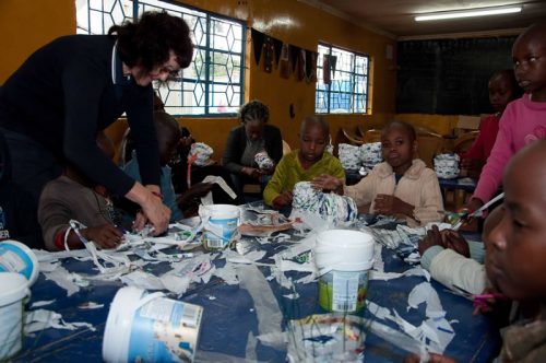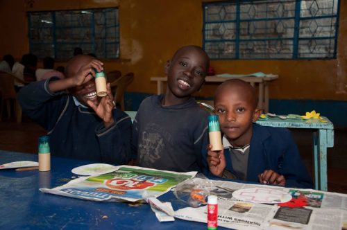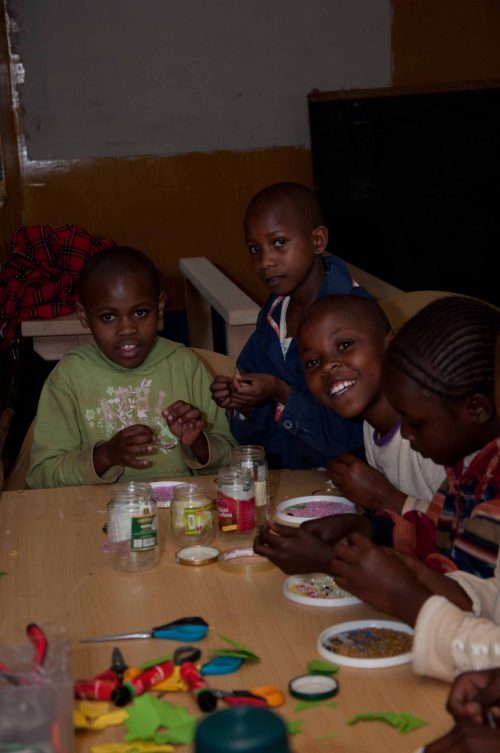 Die kleine Joyce übernahm es, auf Kisuaheli all den anderen, die nicht im Workshop waren, zu erzählen, was wir gemacht haben. Voller Stolz präsentierten sie ihre selbst gebastelten Produkte und sangen aus voller Inbrunst ihren Song. Ich bin sicher, dass die Kinder in dieser Woche viele Anregungen bekommen haben, ihrer Kreativität freien Lauf zu lassen. Auch ich habe in dieser Woche sehr viel gelernt – sozusagen haben beide Seiten voneinander gelernt und profitiert, was ohne die tatkräftige Unterstützung von Mother Grace nicht möglich gewesen wäre.