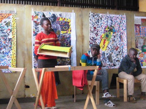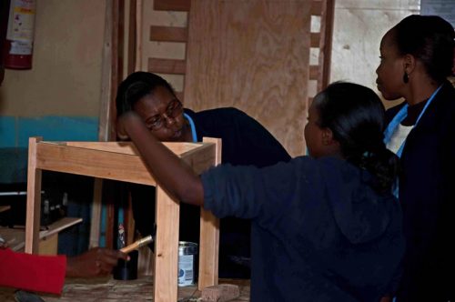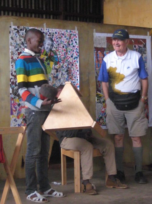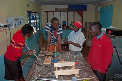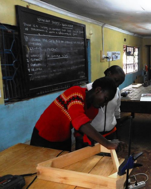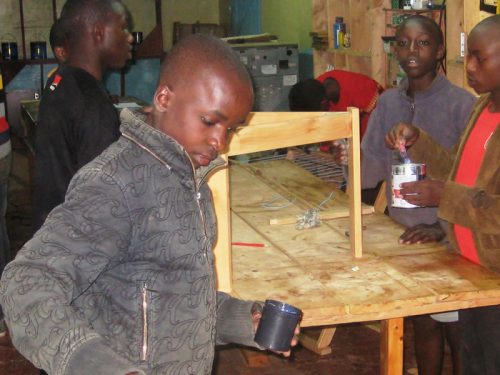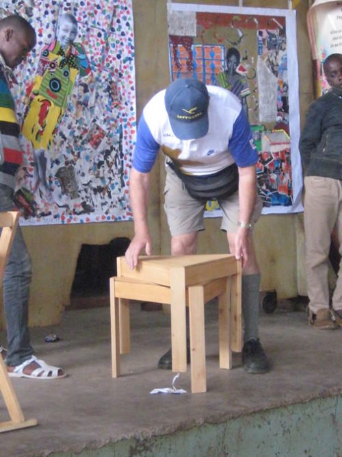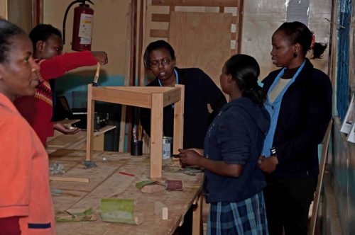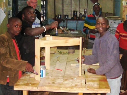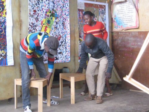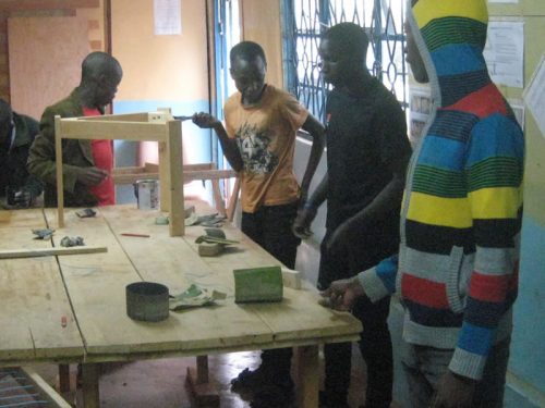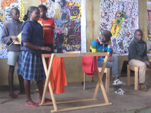 Nach einer arbeitsreichen Woche konnten dann in der Abschlussveranstaltung 2 Webrahmen, 2 Tische und 2 Trockenständer präsentiert werden. Sieglinde hatte 4 Wochen vor Beginn des Summercamps in Nairobi ausreichend Holz eingekauft, so dass jeweils 3 weitere Teile hergestellt werden könnten; spätestens bei einem nächsten Besuch.