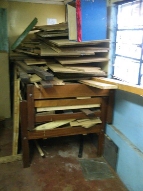 Bedingt durch die beschränkten Flugkapazitäten sind Sieglinde und ich bereits am 12.8. angereist. Diesen Vorlauf haben wir aber auch benötigt. Einmal um eine Art Inventur zu machen, um festzustellen, was noch vor Ort zu beschaffen ist und den Zustand der Holzwerkstatt zu überprüfen. Das war tatsächlich dringend nötig. Die vor 2 Jahren aus Sicherheitsgründen eingebaute zweite Tür war mit einem 1,50 m hohem Altholzstapel (das Holz der inzwischen ersetzten Kleiderschränke) zugestellt. Warum lag das Holz da? „Wir müssen erst Hans fragen, ob er das noch verwenden kann bevor es an andere interessierte in der Gemeinde vergeben werden kann“, war die Antwort. Wir hatten dafür keine Verwendung, also haben wir dann erst einmal fast einen Tag lang zentnerweise Altholz aus der Werkstatt getragen.