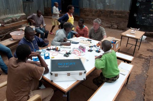 Solarstrom für Kenia, Regenerative Energien für Afrika – ein faszinierendes Projekt, das auch den Schülerinnen und Schülern von Mothers’ Mercy Home im Summercamp 2013 angeboten werden sollte. Fünf Mädchen und vier Jungen hatten sich dafür entschieden und waren – wie sich sobald herausstellten sollte – mit großem Eifer dabei, was Manita, Charles und mich, die den Workshop begleiteten, besonders freute.