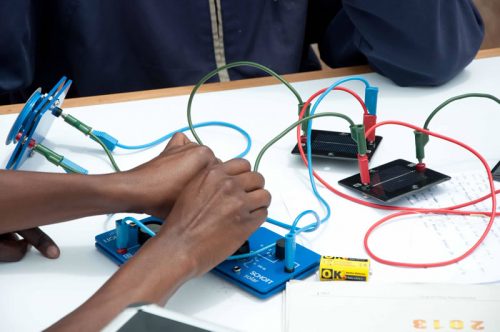Große Freude bereiteten die Experimente mit blinkenden Leuchtdioden, das Messen von Spannungen und die Erzeugung elektrischer Energie mit Hilfe kleiner Solarpanels. Pausen während des Experimentierens? Fehlanzeige! Die Motivation war so groß, dass über Stunden durch gearbeitet wurde.