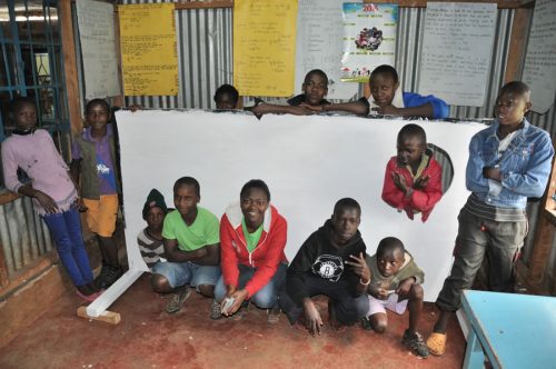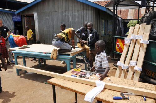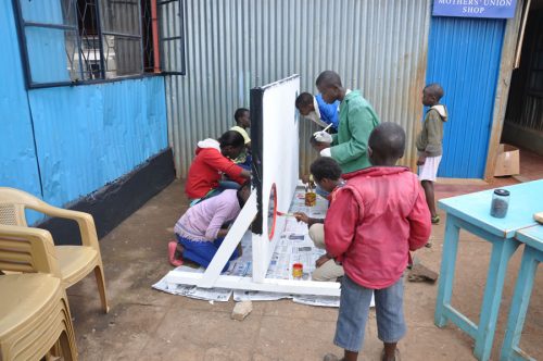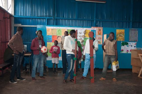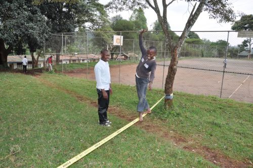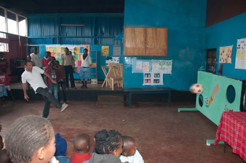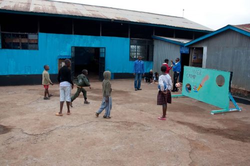 Das Wetter hier in Nairobi ist zu der Jahreszeit immer unberechenbar und so startete unser Summer Camp diesmal kühl und feucht. So auch am Dienstag, an dem wir aufgrund von Wetterkapriolen, von Draußen nach Drinnen, in den Class Room 8 umziehen mussten. Die Torwand wuchs und wuchs. Sie bekam Querverstrebungen und Standfüße und machte einen vielversprechenden sowie stabilen Eindruck.
