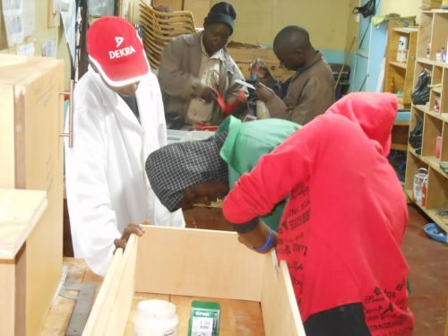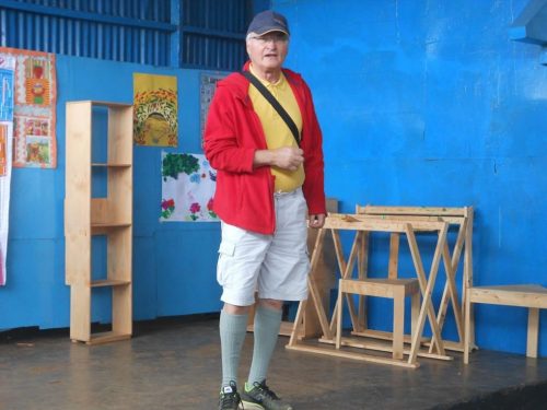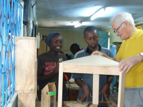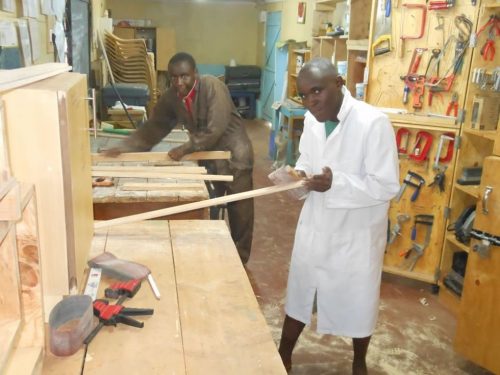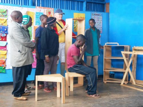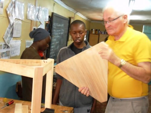 Besonders muss ich Joseph erwähnen. Er ist gerade erst 15 Jahre alt und hat mich in den zwei Wochen Zusammenarbeit damit überrascht, dass er gleich bei seinem ersten Einsatz in der Holzwerkstatt völlig allein einen Trockenständer an Hand meiner Aufzeichnungen gebaut hat, siehe Foto. Es macht Freude, zu sehen, dass es bisher in jedem Jahrgang talentierte und besonders interessierte Jugendliche gibt, die damit die Voraussetzungen zeigen, später erfolgreich ihr Leben selbst zu gestalten. Daran arbeiten wir ihnen gerne zusammen weiter.