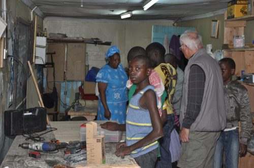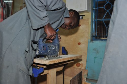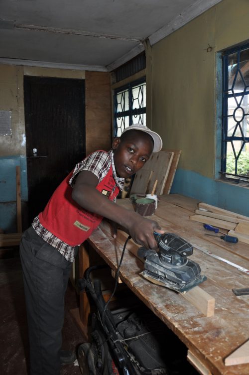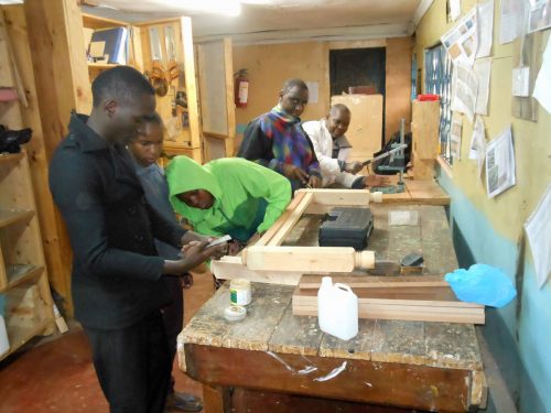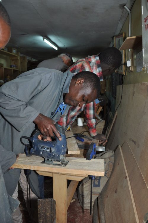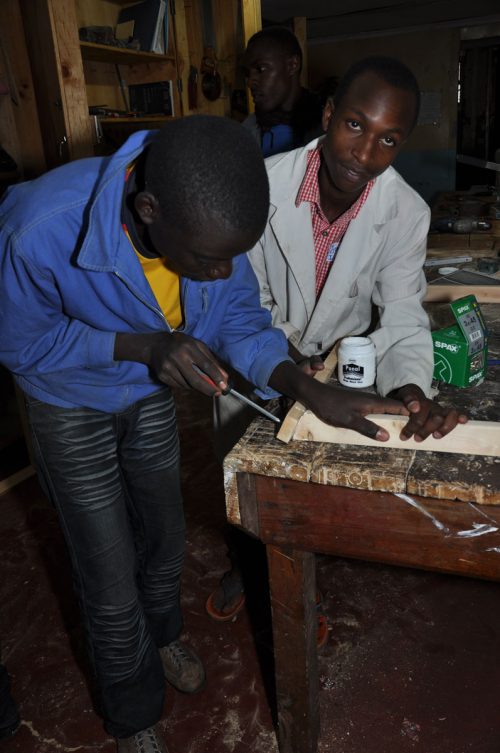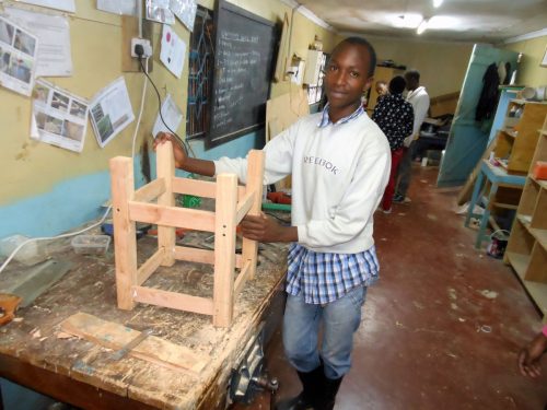 Wenn wir nicht da sind, stellt die Werkstatt nicht nur für Daniel Macharia, den Angestellten des MMH, für notwendige Reparaturen im Heim eine Basis dar, sondern sie hat sich auch als wesentliche und fester Bestandteil in der Vermittlung und Vertiefung von Fertigkeiten für die Kinder und Jugendlichen etabliert. Besonders freut uns, dass die Weitergabe von Wissen auch untern den Jugendlichen selbst stattfindet. So hat z.B. Joseph, einer der älteren Jugendlichen im MMH, in der Woche vor dem Summercamp unter Anleitung von Moses, der 2013 das Heim verlassen hat, einen vierbeinigen Hocker gebaut und dabei gelernt, wie man Zapfenverbindungen herstellt. Wir drücken Moses die Daumen, dass der Aufbau einer eigenen Geschäftstätigkeit als selbständiger Schreiner zügig gelingt.